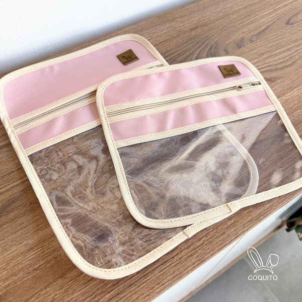 El kit incluye dos bolsitas de hule transparente, con cierre reforzado y las estampas más lindas en sus fuelles.