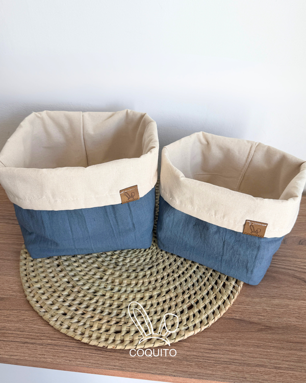 🐰 Dos cestos pañaleros súper espaciosos, confeccionados en tusor 100% algodón, relleno y lienzo. Medidas Cesto grande: 18x18x18 cm. Medidas cesto mediano: 15x15x15.