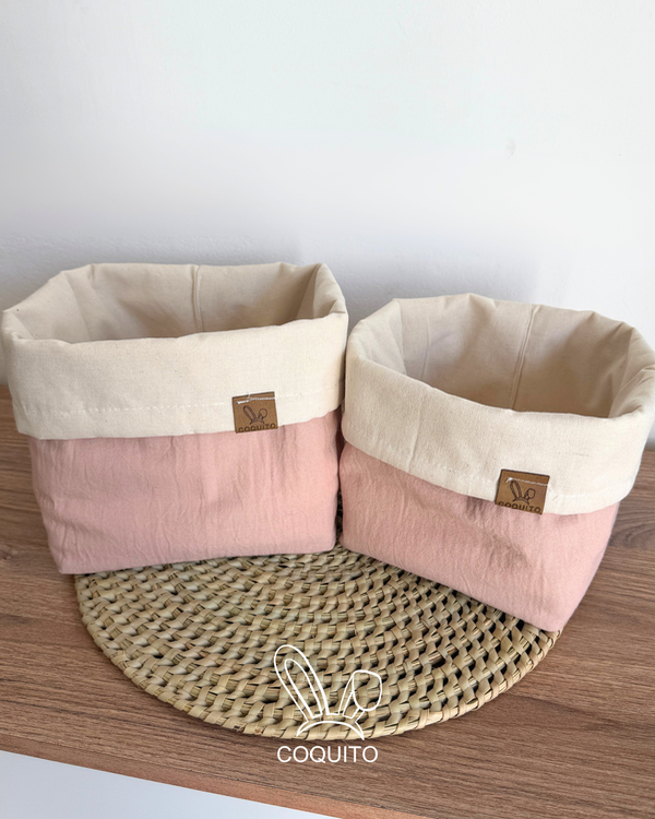 🐰 Dos cestos pañaleros súper espaciosos, confeccionados en tusor 100% algodón, relleno y lienzo. Medidas Cesto grande: 18x18x18 cm. Medidas cesto mediano: 15x15x15.