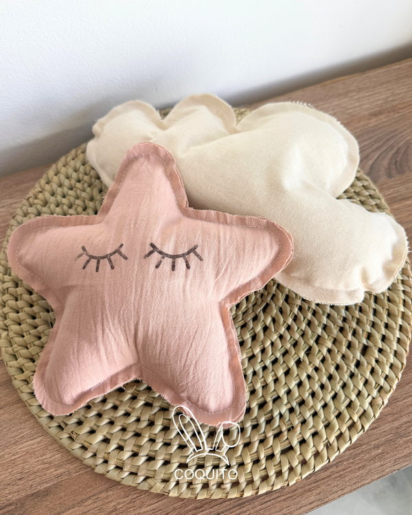 🐰 Dos mini almohadones: estrellita dormilona y nube. Indispensables para decorar algún rinconcito en los espacios de nuestros peques.