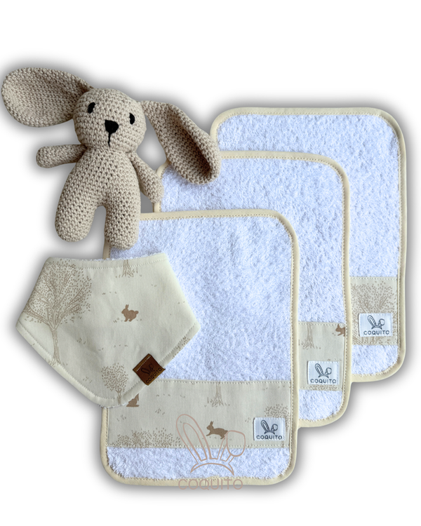 Kit x 3 Babitas y Bandanita Conejitos Beige