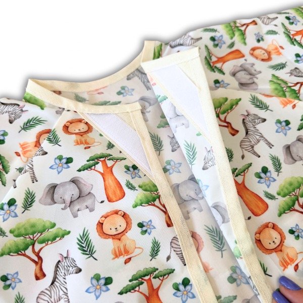 Confeccionado en tela impermeable de la mejor calidad como todos nuestros productos, súper fácil de lavar o limpiar con un trapito y listo para volver a usar.