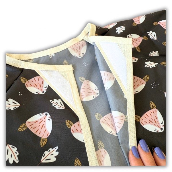 Confeccionado en tela impermeable de la mejor calidad como todos nuestros productos, súper fácil de lavar o limpiar con un trapito y listo para volver a usar.